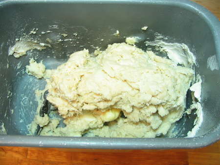 Mix together all of the dough ingredients. The bread machine does a great job; use a stand mixer, a hand mixer, or your hands, if you prefer.