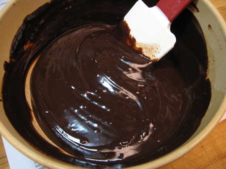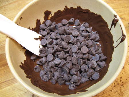When the melted chocolate is smooth, stir in an additional 2/3 cup unmelted chocolate.
