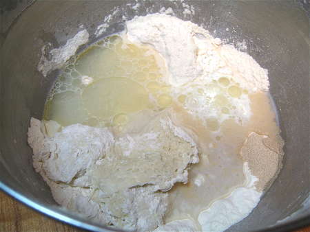 Mix the starter with the remaining dough ingredients.