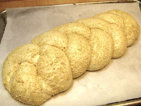 Cover the braid and let it rise till it's very puffy, 1 to 2 hours.