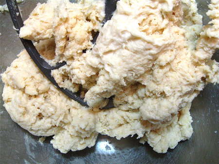 ...and mix till a rough dough forms. At this point, squeeze some in your fingers and see what it feels like. It should be cohesive, but not totally stick-to-the-bowl, gluey/sticky/wet.