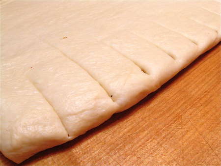 Like this. Isn't this easier than dividing the dough into 16 balls, then having to roll them out?