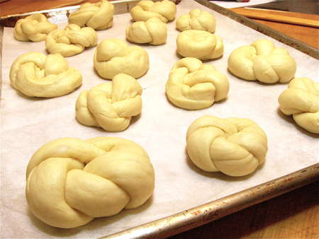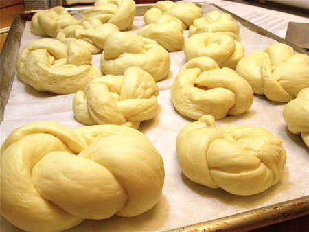 Halley is a budding yeast bread baker. She’s worked her way through whole wheat bread, cinnamon bread, sticky buns, and is an expert at white dinner rolls. She asked if garlic knots used the same dough as dinner rolls. I said, yeah, almost…