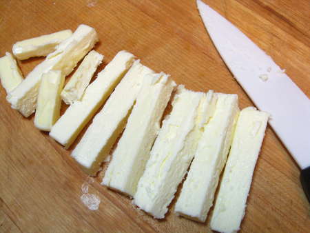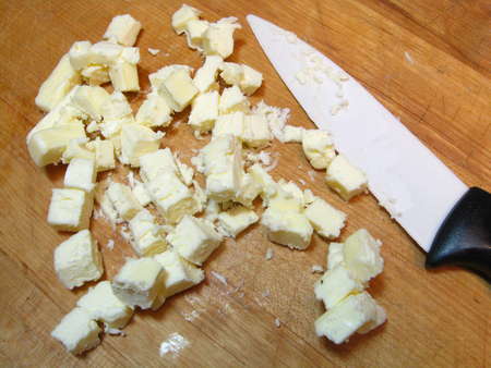 Chunk the cheese, and put it in a food processor. A mini-processor is handy, if you have one.