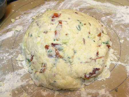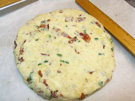 I explored ABC's Web site, hoping to find a picture of these wondrous, soon-to-be-imitated scones. No luck, though I did find a short description: “Bacon Cheddar Scallion Scones—Our cream scones with a savory twist.” Ah-HA! Clue #1. They’re made with cream. I also found a picture of their fruit scones, which were made in the traditional wedge shape. So that was Clue #2. But beyond that—well, it was time for my imagination to take over.