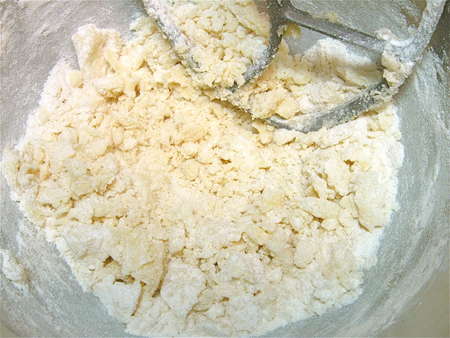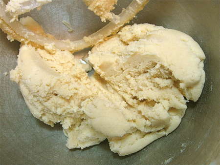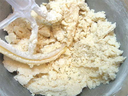 Mix in the flour. The dough will be VERY crumbly at first. Just keep mixing...