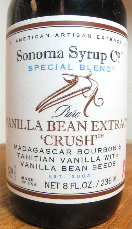Sonoma Vanilla Crush, vanilla extract laced with vanilla seeds. One whiff of this, and you'll remember just why vanilla is the world's most popular baking flavor. This is the most aromatic vanilla I've ever had the pleasure of using. As “Eve in Idaho” notes in a comment on an earlier blog, “To anyone who uses vanilla extract… throw it out and replace it with Vanilla Bean Crush... I am having an absolutely fabulous experience with it. Won’t ever go back to the store version again.”
