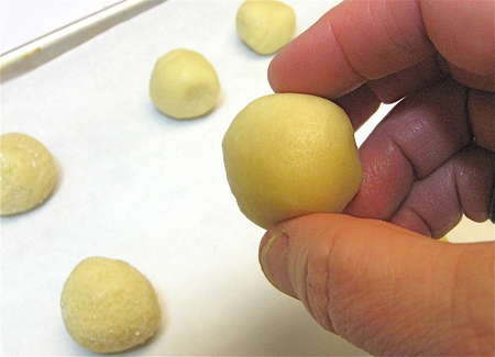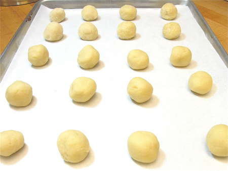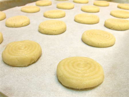 Here they are, ready to bake (sans the sugar coating; I don't use it when I'm going to dip them in chocolate).