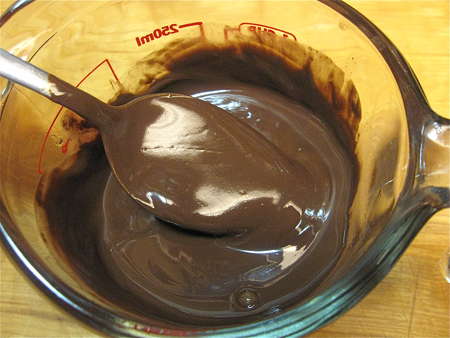 Place chocolate-side-up to set. If you're in a hurry, refrigerate briefly, to set the chocolate.