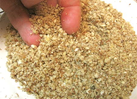 The nuts should be crushed, but not pasty/oily.