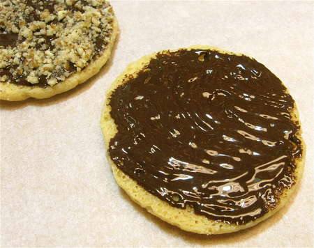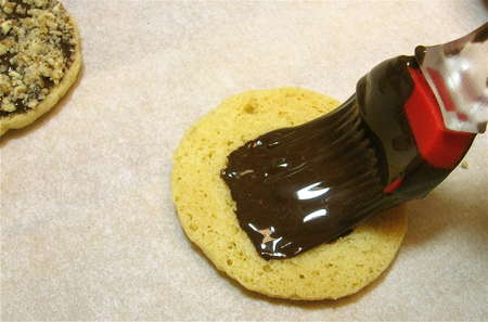 Use a heatproof pastry brush to paint the bottom of each cookie with melted chocolate.