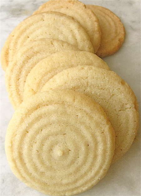 Indeed, crisp/crunchy is the defining element of these rather plain looking, cream-colored cookies. It’s surprisingly difficult to make the “perfect” sugar cookie, since everyone’s idea of perfect is different, harking back to Mom, Grandma, or early experiences with Archway. Some like their sugar cookies totally soft; some “bendy;” some crisp, and some crunchy (yes, there’s a difference). Some folks—mainly old-line New Englanders—even like their sugar cookies rock-hard, the better to dunk in a cup of tea or coffee.