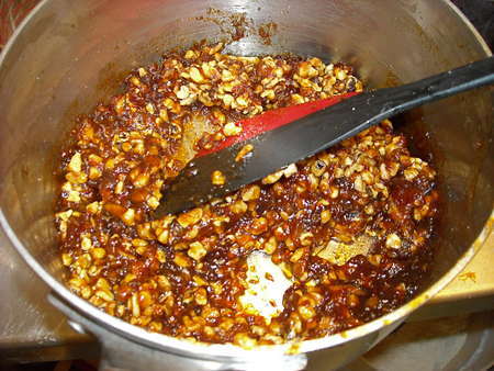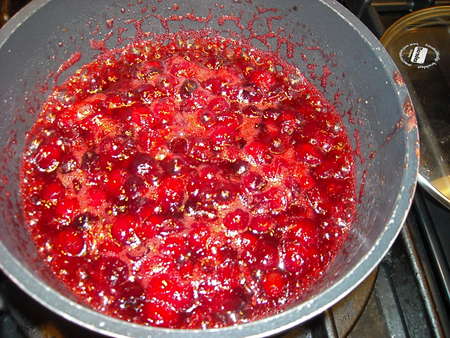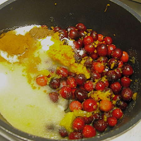 If you’d rather try the cranberry filling (I made a double batch of dough, and invented this filling for the non-date-loving population), put all of the cranberry version’s ingredients into a saucepan, cover it, and bring the whole business to a boil.