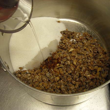 For the filling, put the dates, sugar, water and salt in a saucepan.