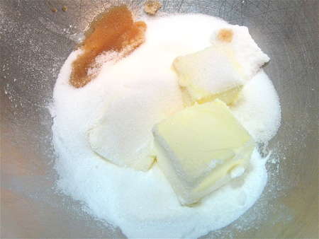 I love this biscotti recipe. It involves simple ingredients, easy techniques, and is the perfect starting point for developing your own special recipe via the addition of flavored extracts, chips, nuts, and fruits. We start here with butter, sugar, salt, vanilla, and baking powder.