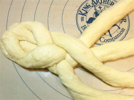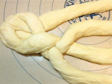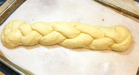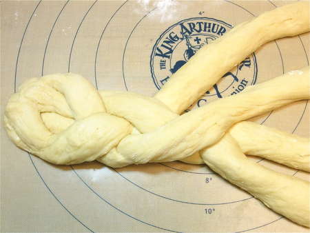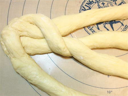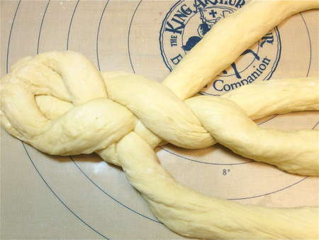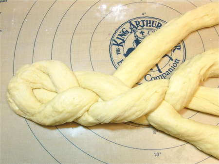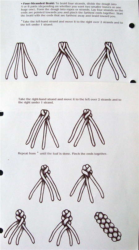 Here's a copy of some handy 4-strand braid directions from The King Arthur 200th Anniversary Cookbook. Refer to these as you work if (like me) you're easily confused by the braiding process.