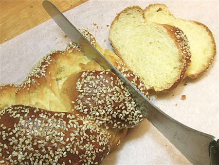 ...till the challah is a beautiful, shiny, golden brown. Cool completely on a rack. Enjoy with dinner. Then use any leftovers for toast or—for a real treat—challah French toast.
