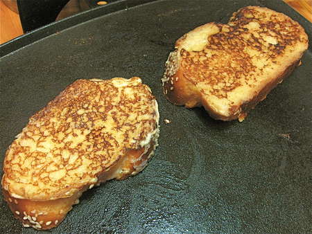 Cook challah over medium-low heat, or on a 300°F griddle, till both sides are golden.