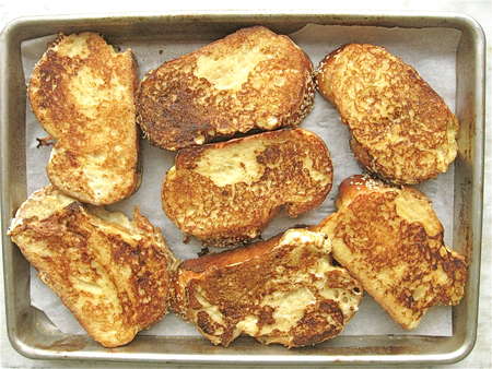 Serve the French toast immediately. Or set it on a baking sheet and keep it warm in the oven till everyone's ready.