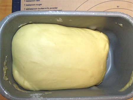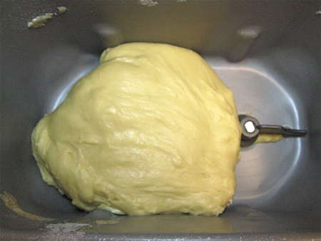 An hour later, it's risen nicely. Because of the eggs and honey this dough doesn't rise vigorously; but it should definitely look puffy by the end of the cycle.