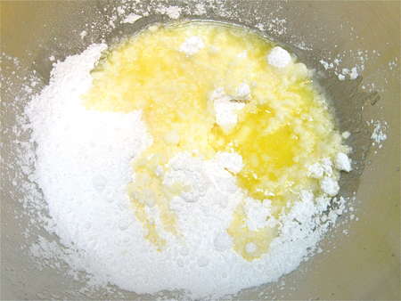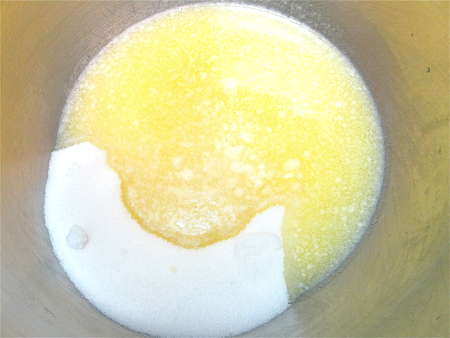This is a very simple recipe. We'll start with melted butter, sugar, and salt.