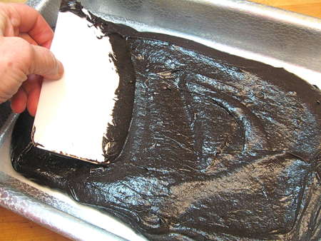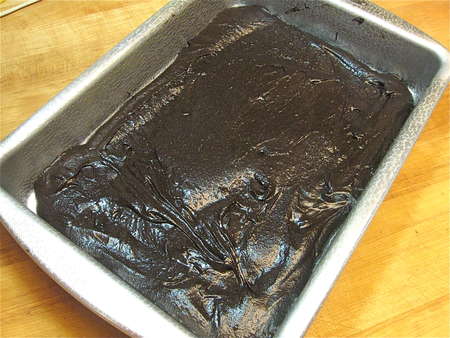 Grease a 9” x 13” pan. For easiest removal, line the pan with parchment, and grease the parchment. Pour the thick batter into the pan...