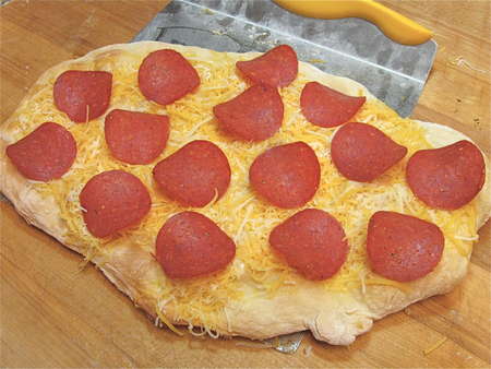 On the other, pepperoni. Turkey pepperoni, which I find less greasy.