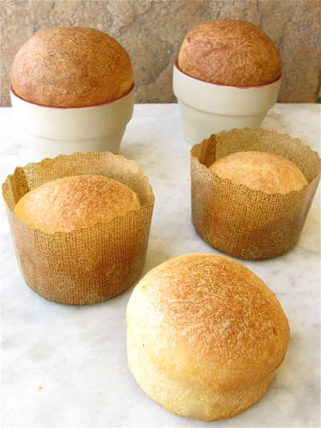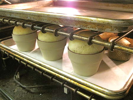 Notice how nicely the dough has crowned over the rims of the flower pots.
