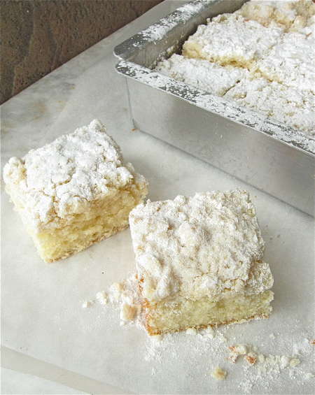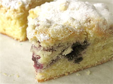 Here it is, your classic crumb cake. Notice it's living up to its name. Be sure to serve this cake either on a plate, or with a napkin, or outdoors, unless you want a crumb trail on your dining room floor.