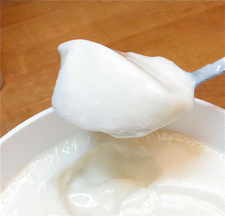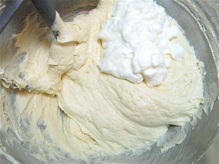 Yogurt is a wonderful cake ingredient, as it tempers gluten, yielding a more tender cake. This is nonfat yogurt I made in my yogurt maker. I added nonfat dry milk to make it nice and thick. It's very tasty, not as acidic as store-bought.