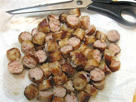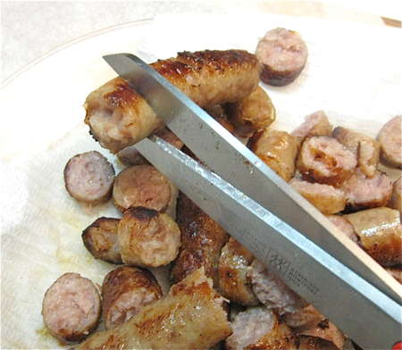 Cut into slices. Again 3/8” to 1/2” is a good size. And a pair of scissors will make quick work of this chore.