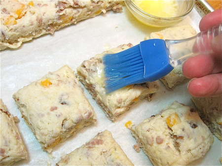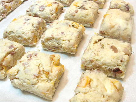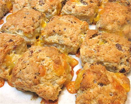 The following biscuits—a.k.a. scones—are a great example of cheese as condiment. With just 1/5 of an ounce of cheese per serving, these are well within what your diet can handle. Even the sausage (less than 1 ounce per serving) isn't a deal-breaker. And their flavor is out of this world.