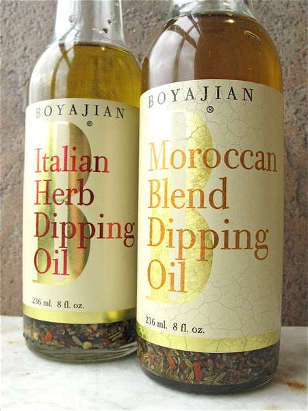 This is what precipitated this post: these utterly sumptuous dipping oils, from the Boyajian company. We've had a long and happy relationship with John Boyajian, the same fellow who provides us with our orange and lime oils, and our garlic oil and balsamic vinegar. Great products all; produced by people who care about doing a good job.