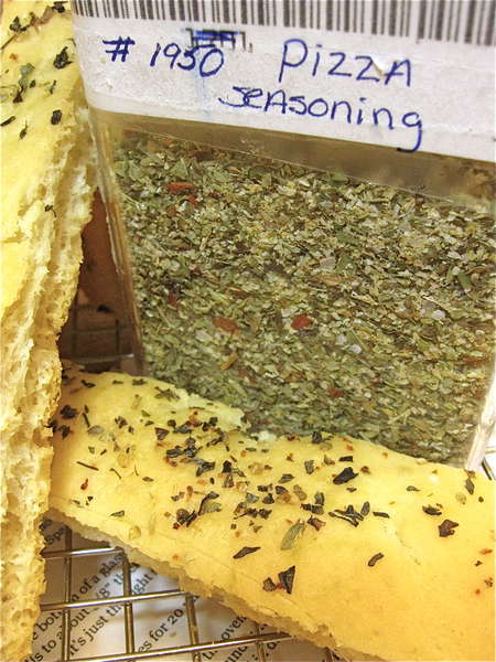 And here's a topping we use regularly: Pizza Seasoning, a mixture of dried herbs, garlic, onion, and spices, blended with a touch of salt. It's delicious atop pizza (or course), or focaccia, breadsticks, or any kind of flatbread.