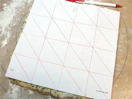 Like this. You will have made 32 scone triangles, about 2" along their shorter sides.