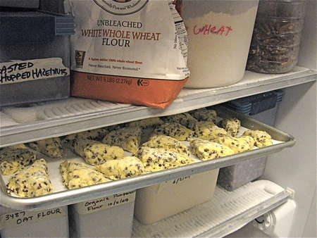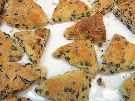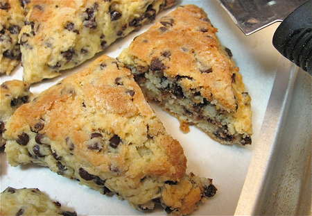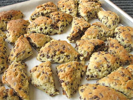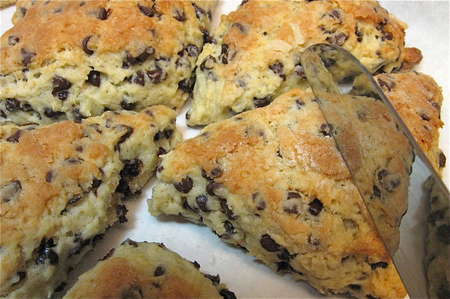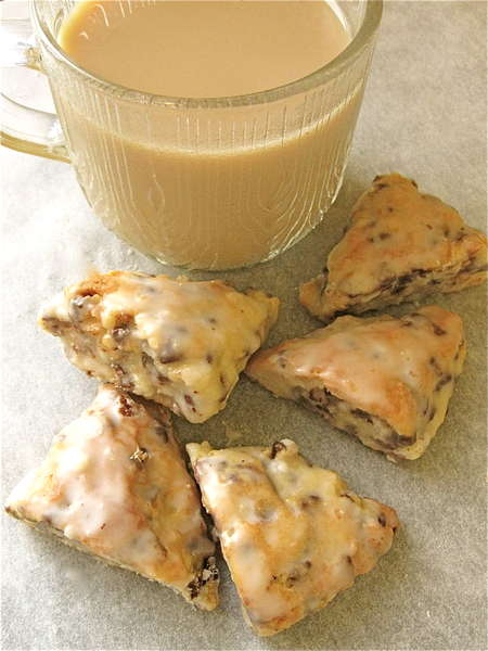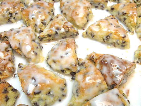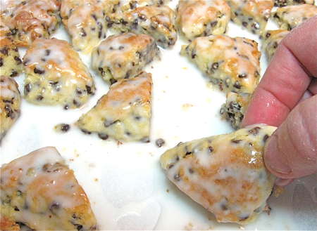 Anyway, back to the kitchen. I made mini-scones with mini chocolate chips late in the afternoon; let them sit overnight, then glazed them in the morning.
