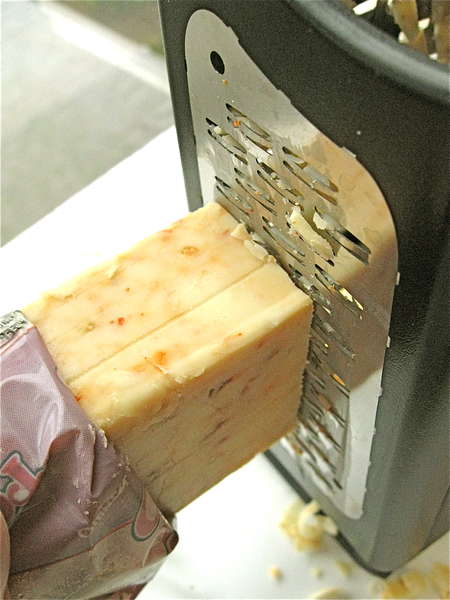 Grate the cheese. Since it'll be soft, you'll want to grate it fairly coarse.
