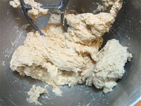 Mix to combine. You'll find yourself with a “shaggy” dough: sticky and rough, but cohesive.