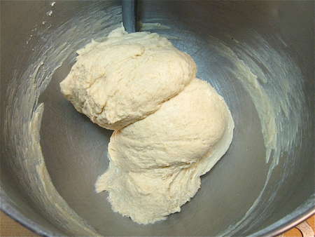 If you're using a stand mixer, switch to the dough hook, and knead for 7 minutes or so. The dough will remain fairly sticky, but will smooth out nicely.