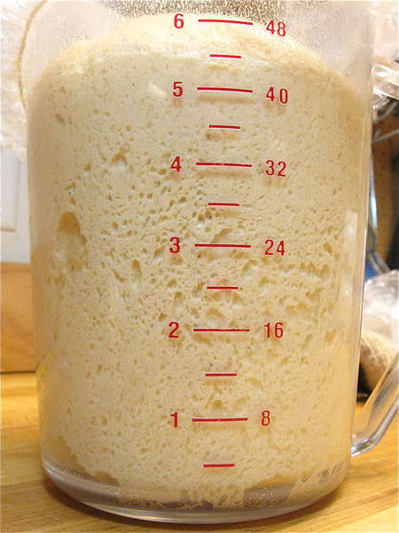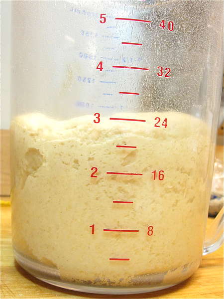 Place the dough in a greased container. I'm using an 8-cup measure, so I can easily track its rise.