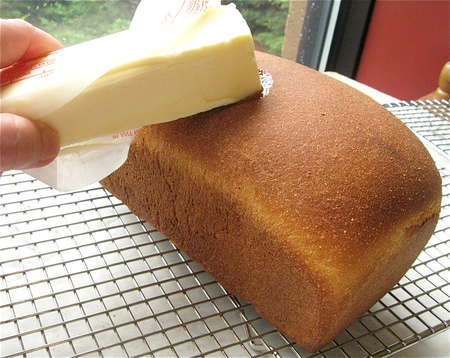 Here's an option: run a stick of butter over the bread's top crust while it's still warm.