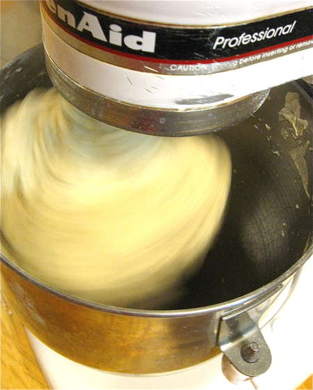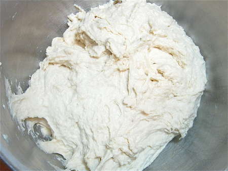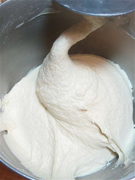 ...then switch to the dough hook and knead very briefly, just 1 to 2 minutes. STICKY but cohesive...