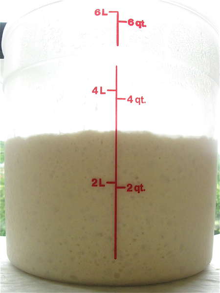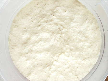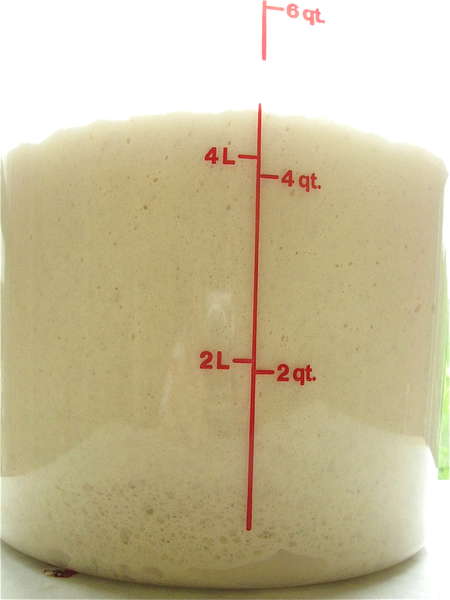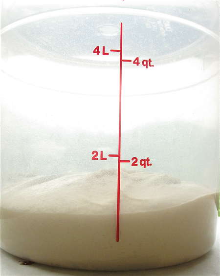 And the next morning - check out that same ridge in the bucket. See how the dough has shrunk?