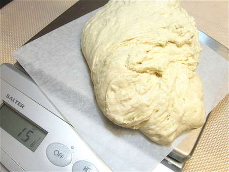 And, here's another monkey wrench: flour absorbs moisture from the atmosphere. This dough, made in the dead of winter, will be much stiffer than it is at the end of a long, hot, humid summer. With that in mind, I'd suggest increasing the flour to 34 or 35 ounces in summer, to avoid dough that's unworkably sticky.