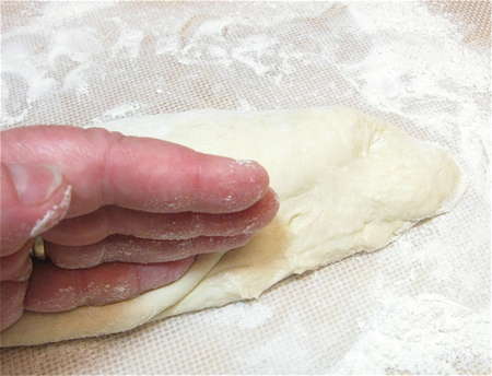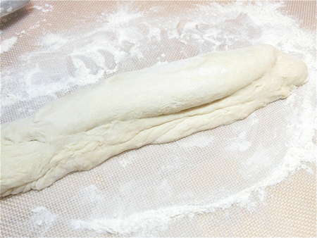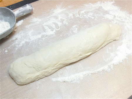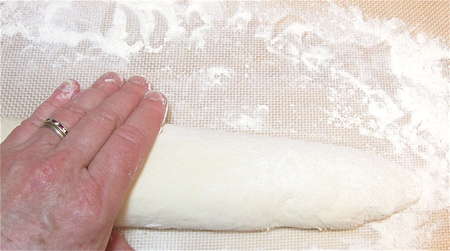 Now it's time to gently roll the dough under your cupped fingers to form the classic baguette shape: about 15” long, with tapered ends.