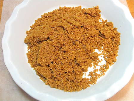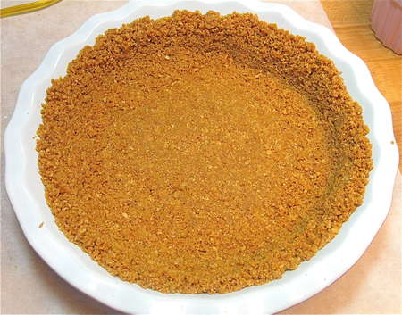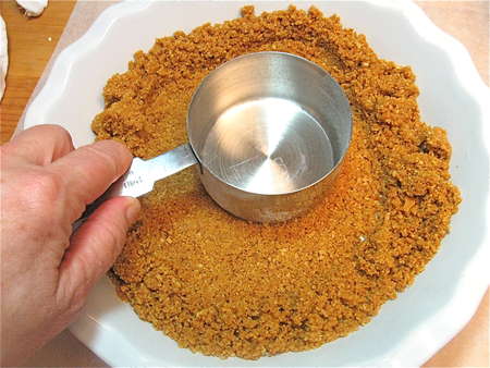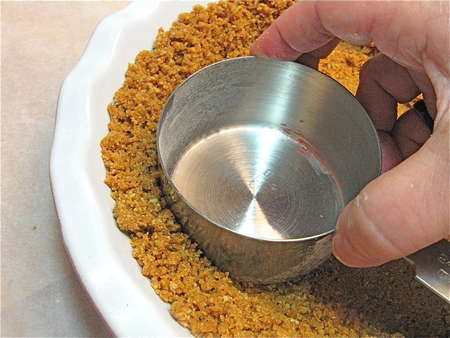Use your fingers or, more effectively, the flat bottom of a measuring cup to press the crumbs into the bottom of the pan.