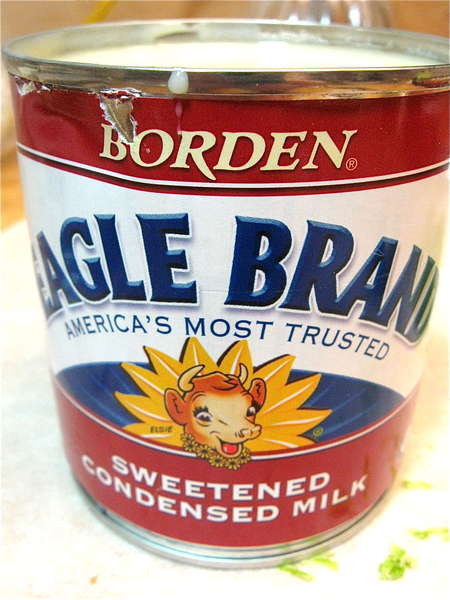 Ah, here it is, the progenitor of I wonder how many hundreds of thousands of Key lime pies since 1856... Borden's sweetened condensed milk. Thanks, Elsie!