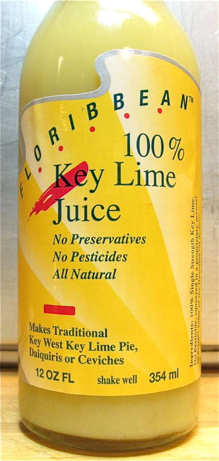 Next, lime juice. Use fresh Key lime juice, if you can find Key limes. (And no, I'm not going to get into an argument about whether all the “true” key lime trees in Florida were destroyed in the hurricane of 1927.) Bottled Key lime juice is an option, too.