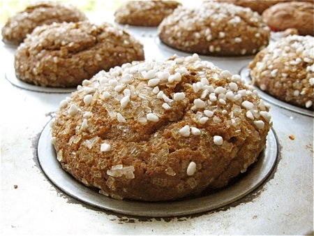 They'll rise nicely. Notice this muffin is topped with both pearl and sparkling sugars; can't help myself, I'm a confirmed “what if” type of baker.
