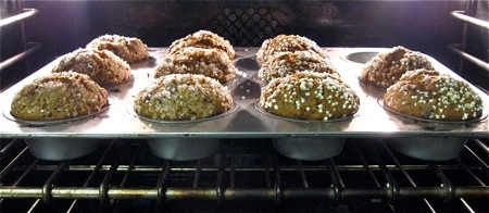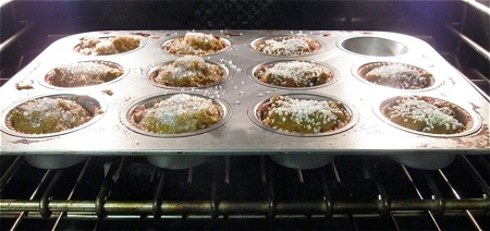 Place the muffins in the preheated 400°F oven. Yeah, there's one missing here; I was doing some kind of experiment, the nature of which now escapes me...
